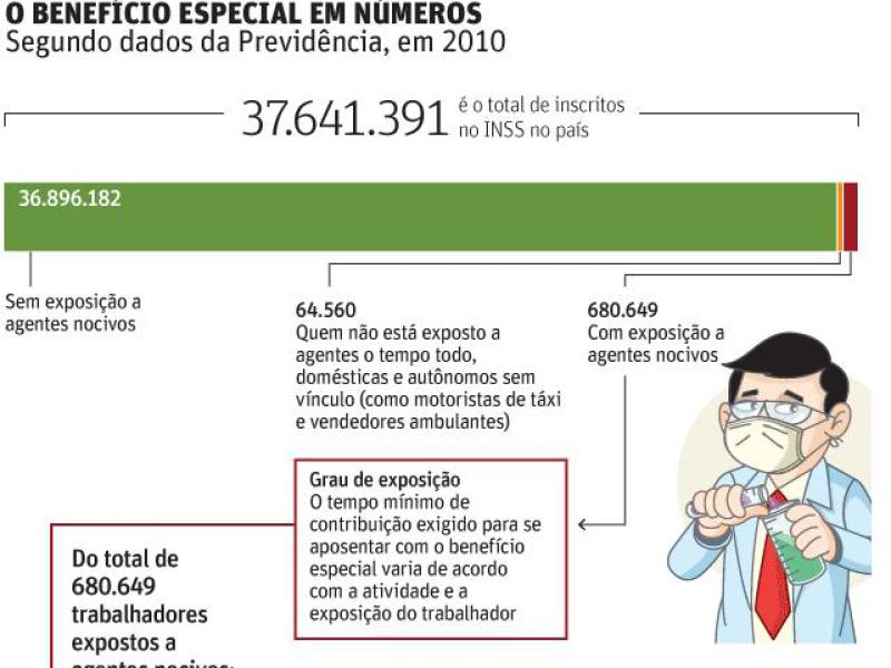 Dos mais de 37 milhões de segurados inscritos no INSS (Instituto Nacional do Seguro Social) em 2010, pelo menos 680.649 estavam expostos a agentes nocivos à saúde e podem garantir o tempo especial na aposentadoria