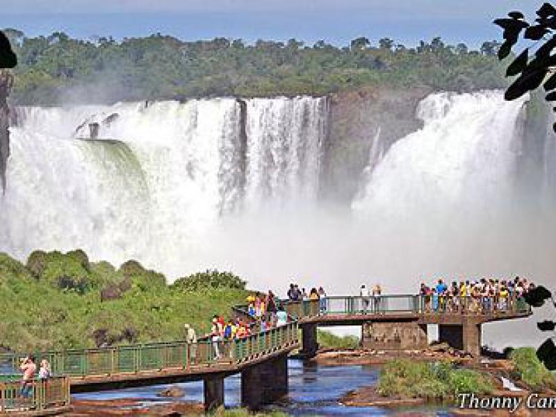 As Cataratas do Iguaçu, situadas entre o Paraná e a província argentina de Misiones, têm uma amplitude de 2.700 metros e 275 quedas de água, com a "Garganta do Diabo" como destaque, com seus 80 metros.
