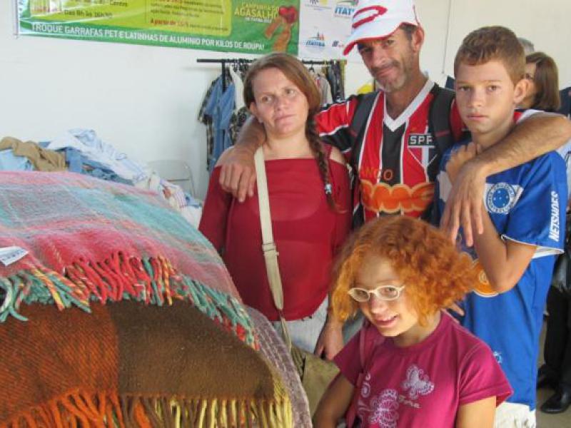 O casal, Rosângela Aparecida de Oliveira, 36 anos, Edmilson José Pinto, 39 anos, e os filhos Gabriele de Oliveira Pinto, 9 anos e Alex Sandro de Oliveira Pinto, 14 anos, também foram ao primeiro dia de Bazar. “Viemos aqui principalmente pelos nossos filhos, pois roupas de criança são muito caras, principalmente as de frio. Aqui encontramos roupas boas e só precisamos trocar por recicláveis”, disse Rosângela.