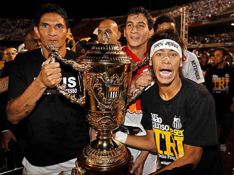 Com a conquista do tricampeonato paulista neste domingo, Neymar chegou ao quinto título em sua curta carreira. Aos 20 anos, esta marca já é melhor até mesmo do que a de Pelé, com a mesma idade e no mesmo Santos, considerando inclusive o troféu de campeão mundial, ganho com a seleção brasileira.