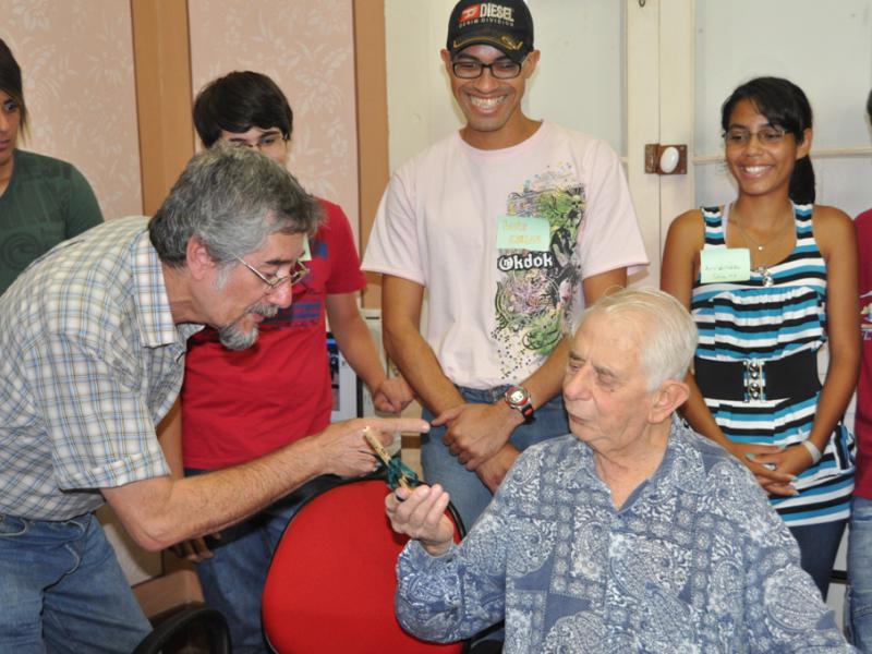 Zé Vasconcelos foi recepcionado pela Diretora de Cultura, Gisele Menzen, funcionários do Museu Padre Lima, participantes da mostra e alunos da Oficina de História em Quadrinhos, que acontece aos sábados no Museu.