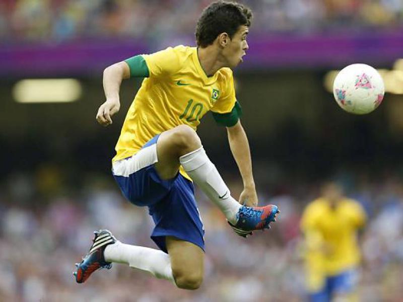 Mas o meia Oscar, negociado com o futebol londrino, tratou de colocar a bola no chão e ditar o ritmo da partida. Aos 15min, ele tocou para Hulk na área. O lateral direito Rafael passou à frente do atacante e finalizou com o pé esquerdo. Brasil 1 a 0.