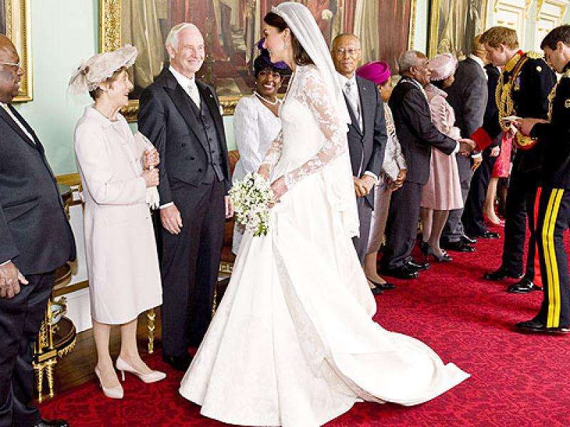 Mas, após semanas de especulações na imprensa especializada em moda, a expectativa era pela primeira vista do vestido da noiva, revelado enquanto Kate entrava na limusine Rolls Royce para ir à Abadia de Westminster e se tornar Sua Alteza Real, a duquesa de Cambridge.