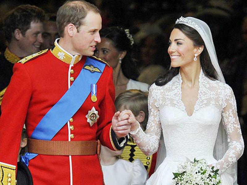 Em uma agradável surpresa a todos os britânicos, a nova ícone da moda escolheu Sarah Burton, criadora da marca Alexander McQueen. Ela escolheu um modelo moderno, delicado e cheio de rendas e um véu contido perto dos 7,5 metros que fizeram parte do vestido de Diana em 1981.