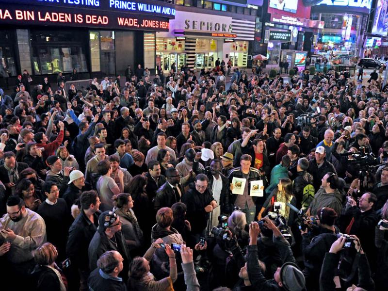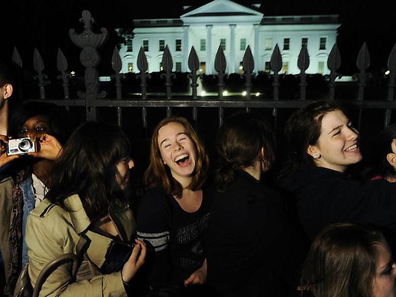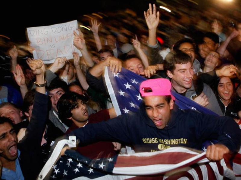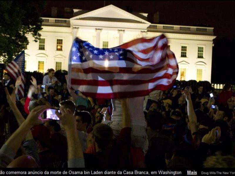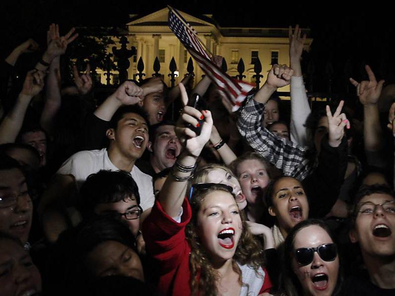 Enquanto Obama fazia seu pronunciamento em rede nacional, centenas de americanos comemoravam em frente à Casa Branca, na noite deste domingo [horário local]. Gritando o nome dos Estados Unidos, alguns manifestantes exibiam bandeiras americanas num ato espontâneo diante da sede da presidência para comemorar a morte do chefe da Al Qaeda. "Nunca senti tamanha emoção", declarou John Kelley, estudante de 19 anos. "É algo que nós esperávamos há muito tempo".