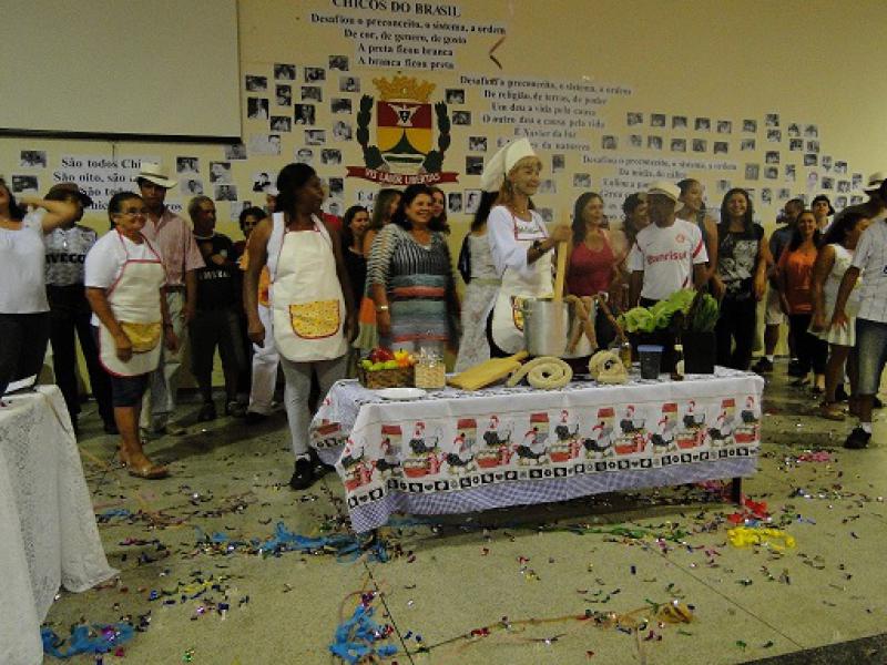 A música ‘Feijoada Completa’, de Chico Buarque, apresentada pela Emeb ‘Cel. Manoel Joaquim de Araújo Campos’, finalizou o evento em clima de festa. A encenação musical lembrou a origem do samba nas batucadas nas cozinhas, enquanto se cozinhavam os alimentos. “Vim ver minha esposa se apresentar no sarau e estou gostando bastante. Senti saudades de quando eu estudava”, disse Dermeval Alecrim Dourado, 68. Para a esposa Teresinha Maria de Souza, 54, há dois anos na EJA, foi uma noite para uma nova experiência. "É a primeira vez que participo do sarau. Foi muito bom, maravilhoso participar da ‘Feijoada Completa’!”, disse empolgada. (Fonte: ACPMI)