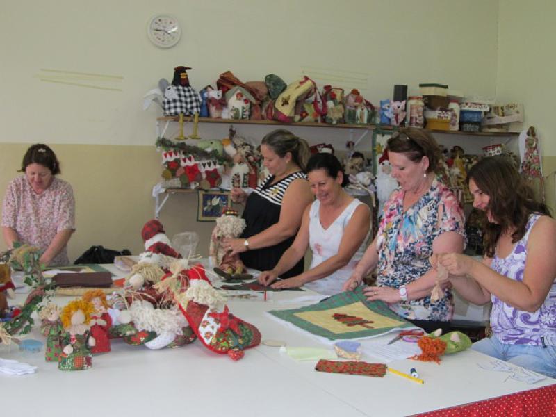 São criações para pendurar em árvores, bonecos, toalhas, bolsas, almofadas, guirlandas, além de trabalhos das alunas de artesanato em madeira, bordado, crochê e vagonite. A ideia é criar o maior número de peças para serem vendidas nos dois Bazares de Natal que acontecem em novembro, com o objetivo de arrecadar fundos para a Campanha Natal Solidário do FSS em parceria com a Secretaria de Ação Social, Trabalho e Renda.