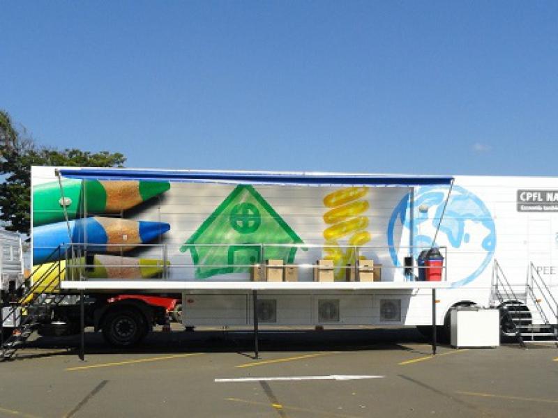 Unidade Móvel da CPFL que orienta sobre o uso eficiente de energia estaciona no Parque Luís Latorre, Itatiba-sp, nesta terça-feira, 19