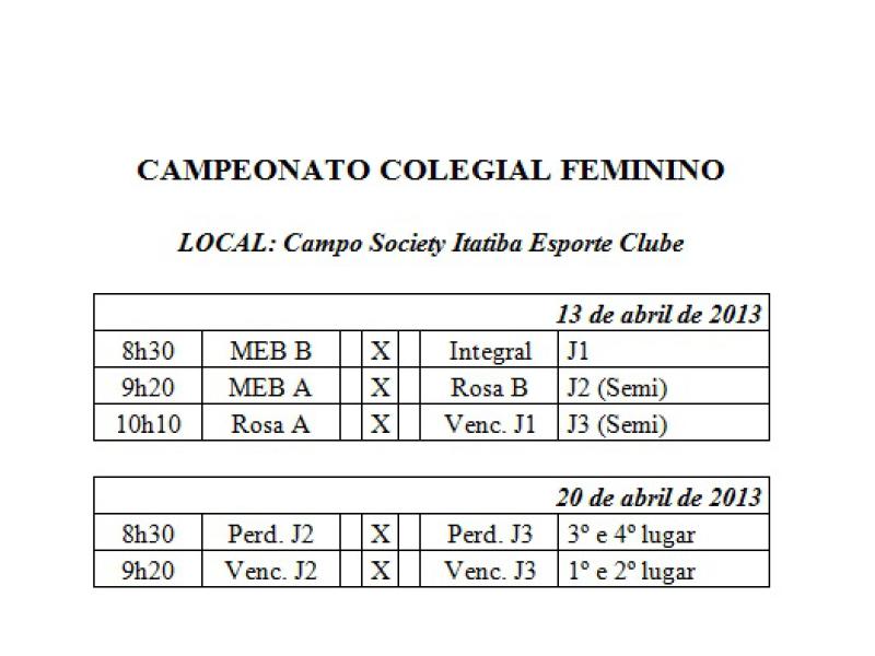 Está tudo pronto para o I Campeonato Colegial de Futebol Society Feminino promovido pela Cidade de Itatiba, Veja os detalhes: