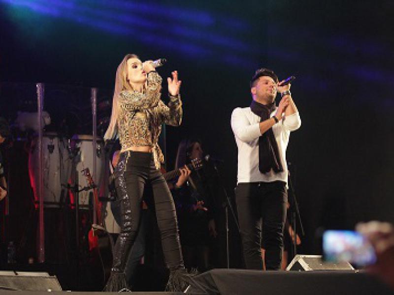 Thaeme e Thiago também se disseram felizes por estarem novamente na festa. "Estamos muito felizes de sermos tão bem recebidos por vocês", afirmou a dupla que aproveitou para chamar o público para cantar os sucessos "Tcha Tcha Tcha", "Perdeu", "365 dias", "Ai que dó", "Hoje não" , a nova canção "Deserto" e músicas de artistas como Xuxa e Mamonas Assassinas.