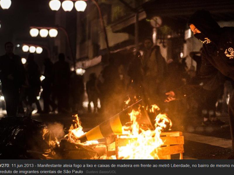 Antes do início do ato, a reportagem presenciou o confronto entre policiais e manifestantes na esquina da rua Líbero Badaró e o viaduto do Chá, no centro. Jovens chegaram a jogar cones de sinalização contra os PMs.