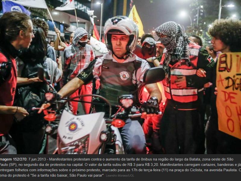 As lideranças do movimento e os comandantes da PM tentavam chegar a um acordo quando o conflito teve início. A PM usou bombas de gás lacrimogêneo e balas de borracha contra os ativistas, que responderam atirando objetos. A partir de então, o protesto se dispersou por várias ruas, com os policiais perseguindo os manifestantes. Cerca de 5.000 pessoas participam do ato, segundo a PM.