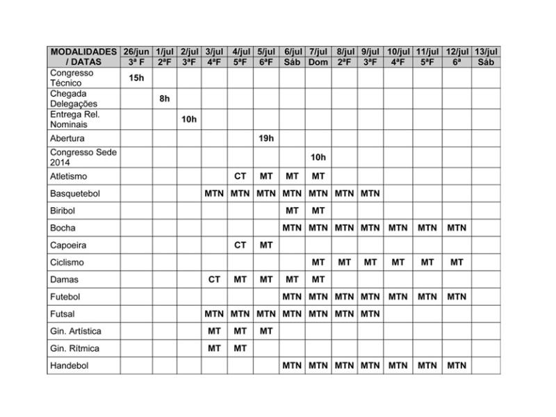 A Comissão Organizadora dos 57º Jogos Regionais divulgou a programação da competição que acontecerá entre os dias 3 e 13 de julho em Itatiba, sp