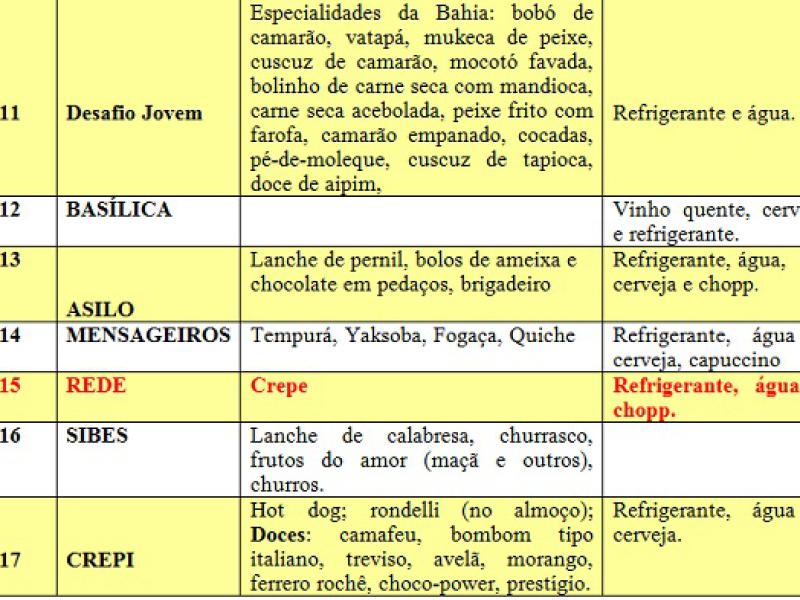 Na 19ª Festa de São Pedro, que começa nesta sexta-feira, dia 5 de julho e segue até domingo, dia 7 de julho, não poderia ser diferente: pratos típicos juninos, lanches diversos, doces de todos os tipos e muito mais fazem da da praça de alimentação um verdadeiro festival de gastronomia local (confira o cardápio abaixo, clique nas fotos para ampliar).