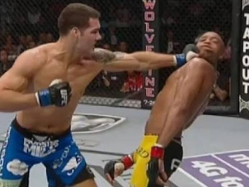 O segundo começou da mesma maneira, mas Anderson exagerou ainda mais na brincadeira. Baixou a guarda novamente, passou a gritar com Wediman e fazer como Ali. Mas em uma das vezes que fingiu baquear com um golpe, Chris foi para cima e acertou um direto que derrubou o brasileiro. No chão, Weidman encerrou o nocaute.