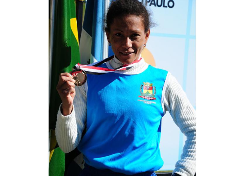 Na foto, a atleta que pegou bronze pelos 5 mil metros rasos, Maria Lúcia Alves Vieira de Moraes