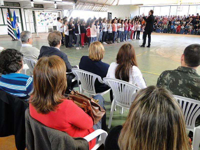 Os alunos cantaram o hino nacional e assistiram a apresentação do Coral da Emeb 'Júlio César', sob regência do maestro e cantor lírico Nunno Delallio. A Banda Marcial Municipal – Fanasa, encerrou as atividades com uma bela apresentação, ministrada pelo professor Marco Camargo.