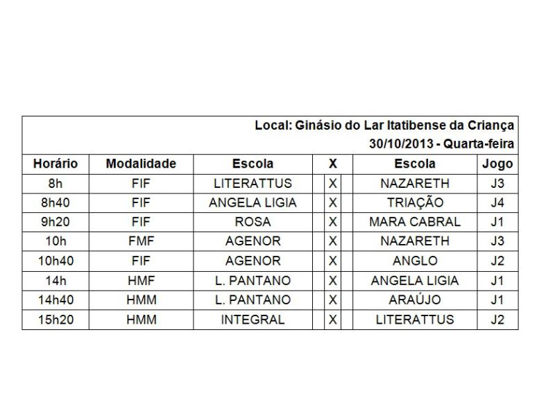 Sai as tabelas dos jogos da XXXVI Olimpíada Estudantil, Confira!