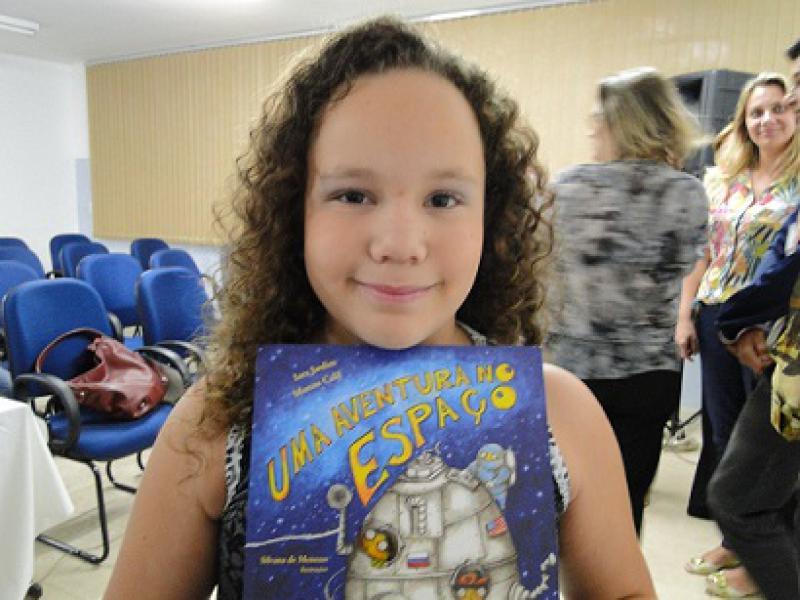 A aluna Paola dos Santos Alves, da Emeb ‘Profa. Guiomar de Almeida Ciarbello’, ganhou um livro de Astronomia por ter conquistado o terceiro lugar na categoria Curiosidade Científica. “Eu nunca tinha vindo ao Planetário, mas agora vou poder conhecer mais sobre Astronomia com o livro que eu ganhei”, disse Paola.