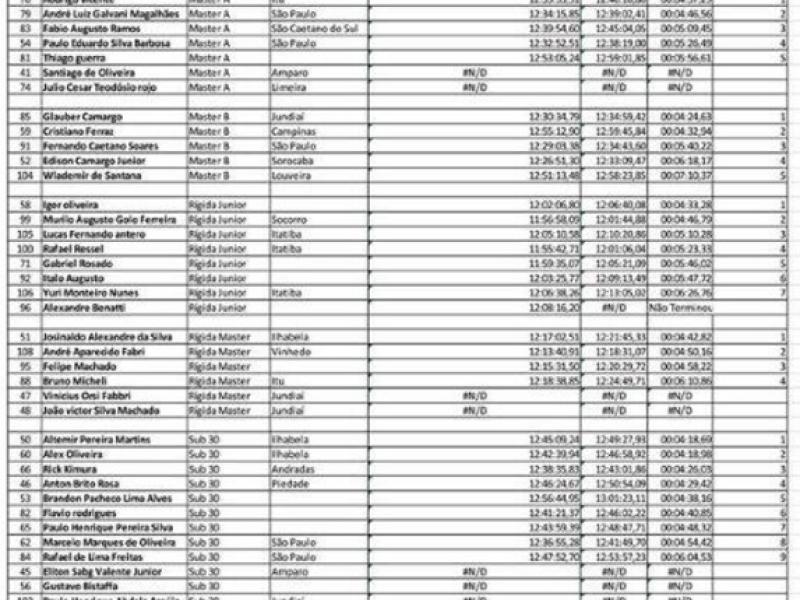 Devido a problemas em sua bicicleta, Matheus Vitor Souza, teve que trocar de bike e de categoria. Correu na Elite e ficou com na quinta posição do pódio."
