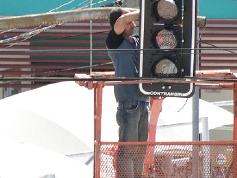 Semáforos estão sendo substituídos no centro de Itatiba