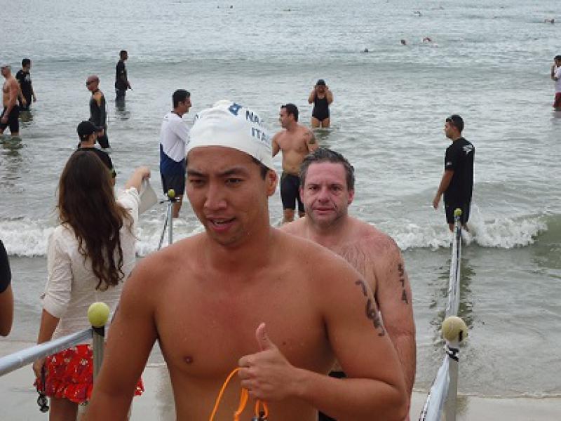 Giba e André na chegada da prova em 2013, realizada na cidade de Caraguatatuba