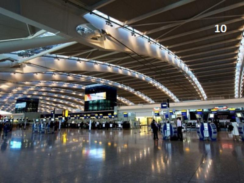 10º lugar: Aeroporto de Heathrow, em Londres, na Inglaterra, manteve a posição alcançada na edição do Airport Awards do ano passado. Possui o melhor terminal entre os aeroportos pesquisados e o melhor centro de compras. O Airport Awards é considerado o Oscar da aviação, promovido pela empresa de consultoria britânica Skytrax. Este ano, foram avaliados 410 aeroportos de 160 países e entrevistados 12,8 milhões de passageiros. Na edição 2014, nenhum aeroporto brasileiro foi listado. Divulgação (Fonte: UOL)