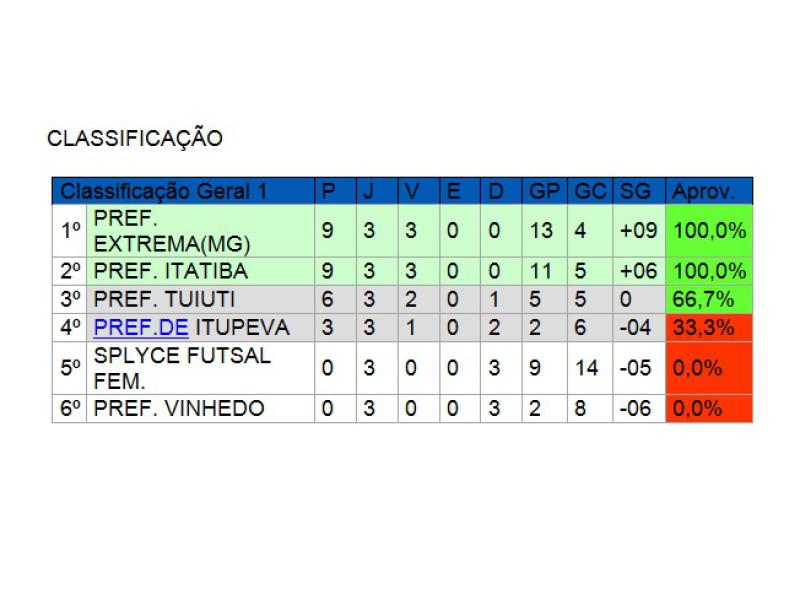 As duas equipes estão empatadas em primeiro lugar com nove pontos em três jogos. (Veja tabela abaixo). Extrema ganha no saldo de gols, mas os resultados da quarta rodada, que acontece no próximo dia 27 de abril, no Ginásio 'Valdemar Corceli', podem mudar tudo.