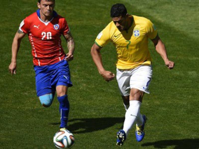 Neymar foi responsável pelo cruzamento do Brasil que acabou no gol de David Luiz ainda no primeiro tempo do jogo entre Brasil e Chile. Nos pênaltis, o jogador converteu sua cobrança. (Fonte: UOL)