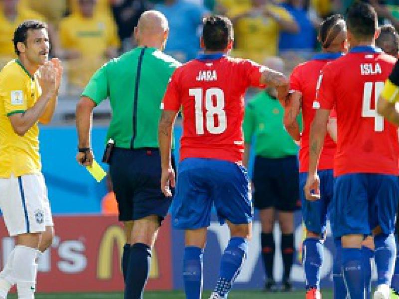 "Foi na primeira jogada que o adversário bateu pesado. Eu me lembrei de quando era treinador de Portugal e aos 5 minutos de jogo e o jogador da Holanda quebrou o Cristiano Ronaldo no meio e aos 15 minutos o CR7 teve que sair de jogo. A coxa do Neymar está deste tamanho (inchada). Não entendo porque falam que o Neymar cai. Neymar caiu, mas hoje foram 15 faltas no Sanchez e ele se jogou 12. Neymar tem que ser valorizado pelo esforço. Teremos quatro e cinco dias de problemas para colocá-lo em campo no próximo jogo", disse Felipão.