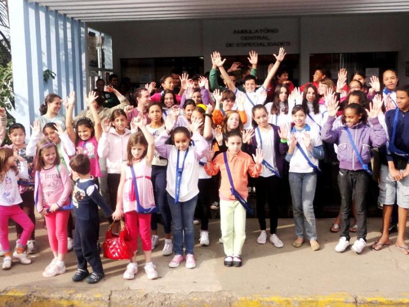 Crianças do Grupo de Flautas participam de caminhada contra o lixo
