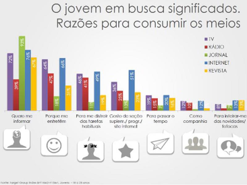 A pesquisa apresentada por Juliana Sawaia, diretora de Learning & Insights do IBOPE Media, no youPIX SP Festival 2014, mostra que o consumo de outros meios também é expressivo entre os jovens, sendo que 92% assistem TV e 68% escutam rádio. Além disso, de acordo a executiva do IBOPE Media, a internet deve ser reconhecida hoje como uma plataforma estratégica de interação e engajamento com os outros meios.