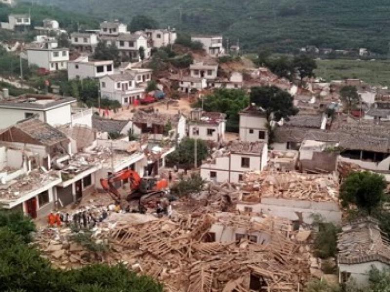 O terremoto derrubou e causou dano a muitos edifícios, em particular nas construções mais antigas e residenciais. Foram derrubadas mais de 12 mil casas e danificadas outras 30 mil, detalhou a "Xinhua". A televisão local CCTV disse que o terremoto é o mais forte a atingir a província nos últimos 14 anos, de acordo com a rede inglesa BBC.