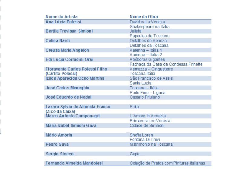 Esta é uma parceria com a AIBI – Associação Ítalo Brasileira de Itatiba com obras pintadas por artistas Itatibenses.