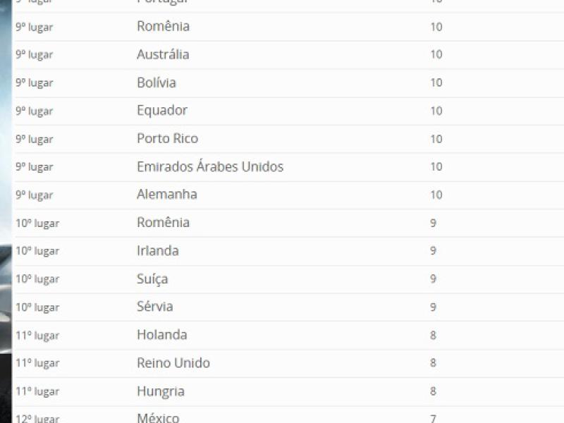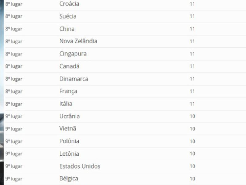 Confira abaixo o ranking na íntegra (vale lembrar que, como vários países podem ter o mesmo número de feriados, alguns compartilham a mesma classificação na lista) :