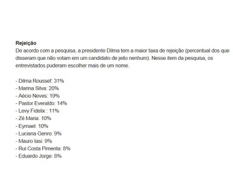 "Dilma abre vantagem de 7 pontos sobre Marina no 1º turno; empate técnico no 2º"