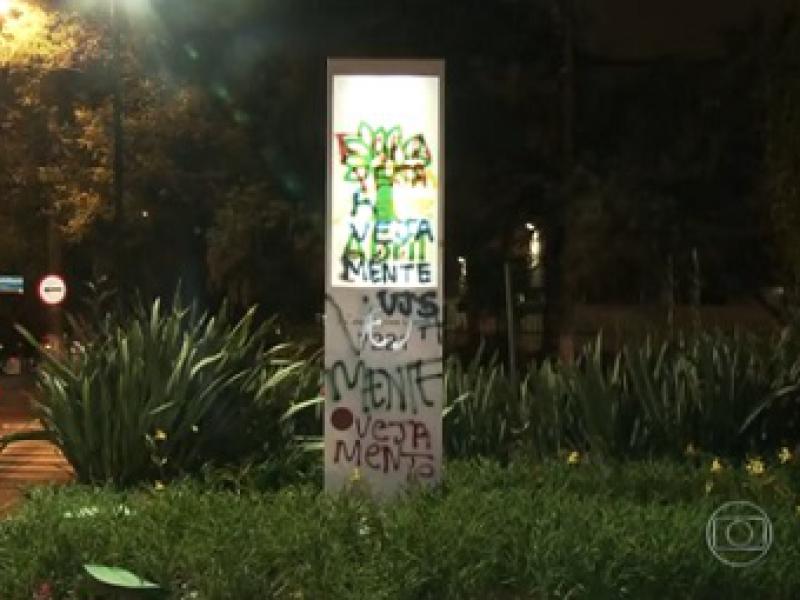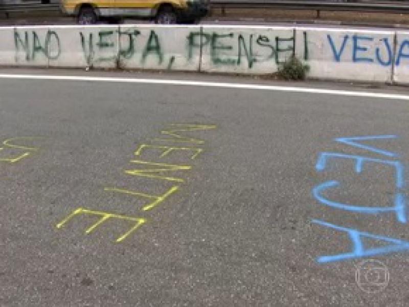 Prédio da editora Abril é pichado durante protesto contra revista 'Veja'