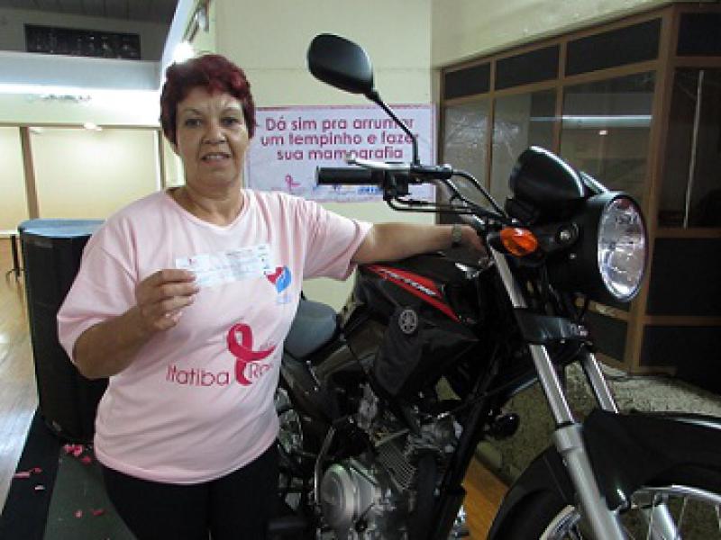 Ainda segundo relata a assessoria da cidade de Itatiba, "Um dos momentos mais esperados do encerramento foi o sorteio de brindes e da moto 0 km. Doada pela empresa HT Plus, a moto, uma Yamaha Factor K1, modelo 2014/2015, da cor preta, foi sorteada para a moradora do Bairro do Engenho, Maria Aparecida de Souza Momentel, de 56 anos, que estava presente no evento de encerramento da campanha. “Não acredito que ganhei a moto, nunca ganhei algo parecido, estou muito contente. Durante este mês, participei da Caminhada Rosa e também incentivei as pessoas mais próximas a se engajarem na luta através da prevenção da doença”, disse Maria Aparecida.