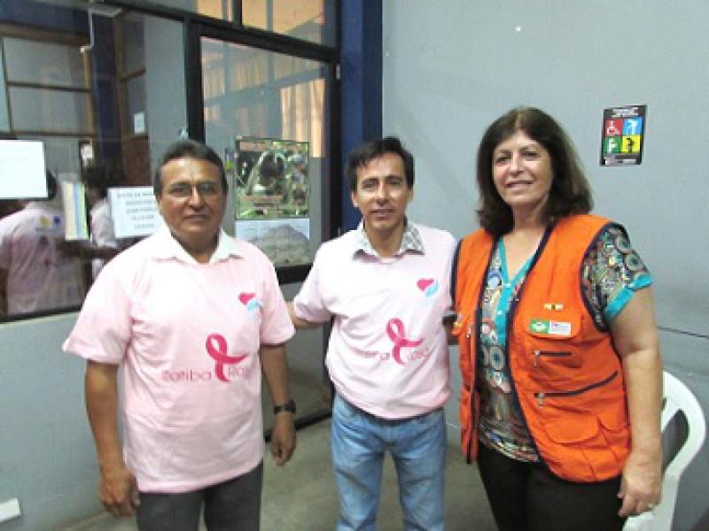 A comitiva itatibense que visitou a cidade peruana de Banda de Shilcayo presenteou o Prefeito Luis Neira León e o Coordenador de Defesa Civil Jaime Arevalo com camisetas da campanha 'Itatiba + Rosa' e eles demonstraram seu apoio à ação vestindo as peças de roupa