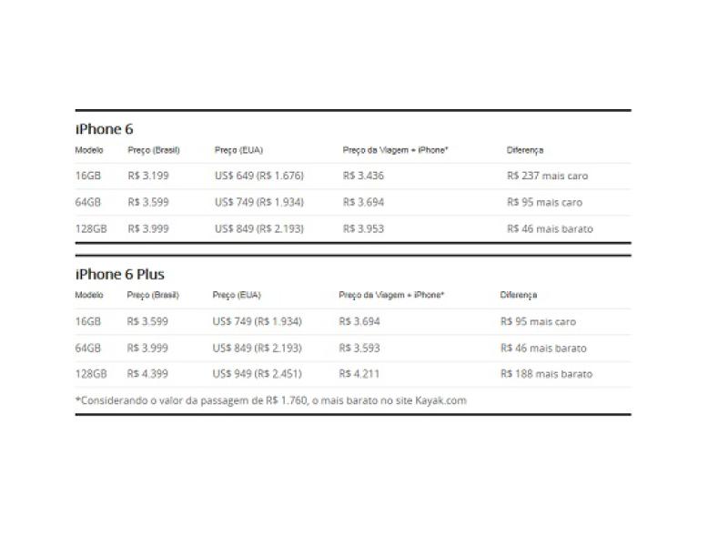 Por aqui, o iPhone 6 Plus será vendido no intervalo de preço de R$ 3.599 e R$ 4.399, enquanto o aparelho, por lá, sai entra US$ 749 e US$ 949, ou R$ 1.934 a R$ 2.451. Os preços mais elevados "justificam" uma viagem para os Estados Unidos comprar, mas apenas se você realmente for fazer algo por lá.