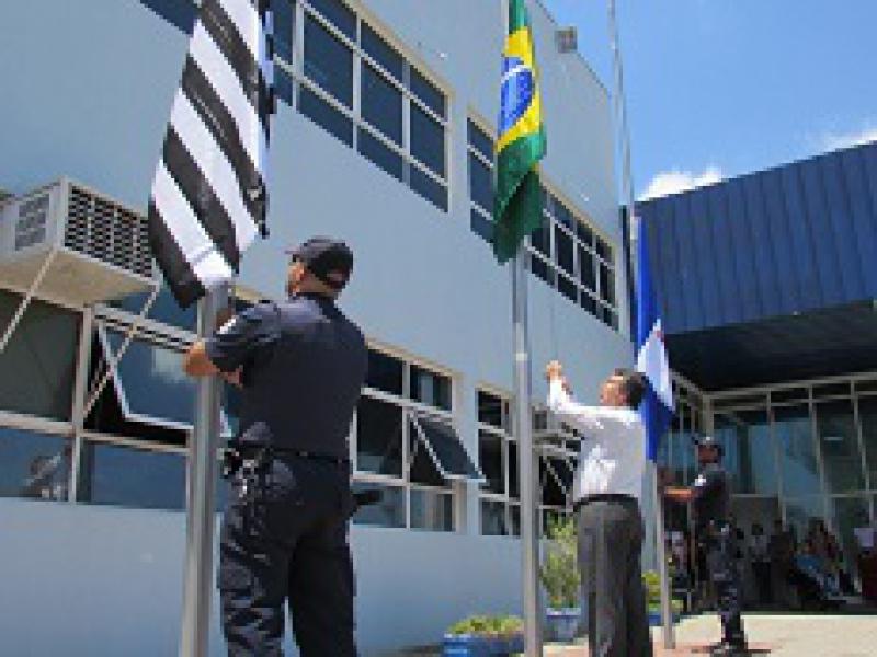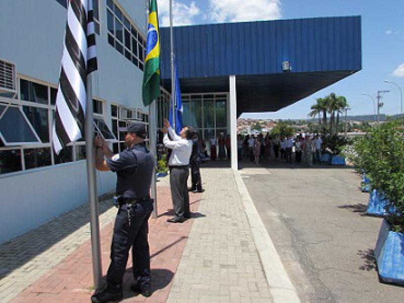 Participaram da solenidade os funcionários da Prefeitura e o hasteamento foi realizado pelo Secretário de Administração, Roberto Penteado, e por guardas municipais.