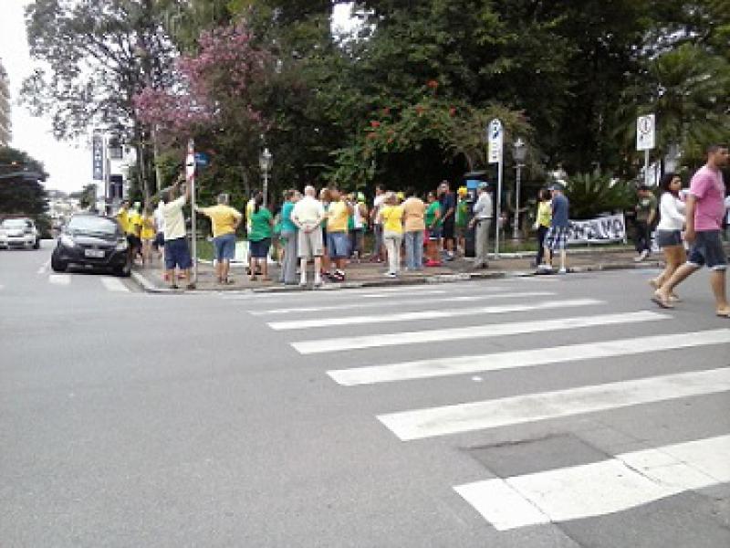 Um grupo de pessoas protestou na manhã deste domingo (15), em São Roque (SP), contra a corrupção no país. A manifestação foi na Praça da Matriz e, segundo a Polícia Militar, 80 pessoas participaram. Para os organizadores, cerca de 200 pessoas foram às ruas.