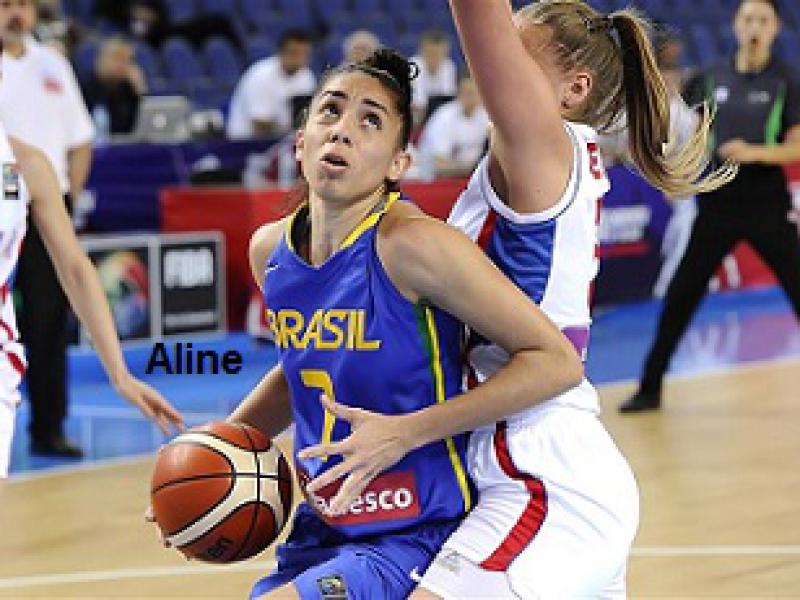 A jogadora Aline Moura em ação pela Seleção Brasileira de base