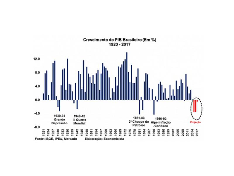A entidade foca no pior resultado desde o início do século passado pelo único fato de termos série histórica registrada apenas de tal período. Não duvido que a contração atual da atividade deve ser a pior desde antes da chegada dos portugueses nessas terras, podendo ser superada apenas por alguma crise enviada por Tupã aos índios a alguns séculos atrás, que por algum motivo não lhe enviaram sua oferenda.