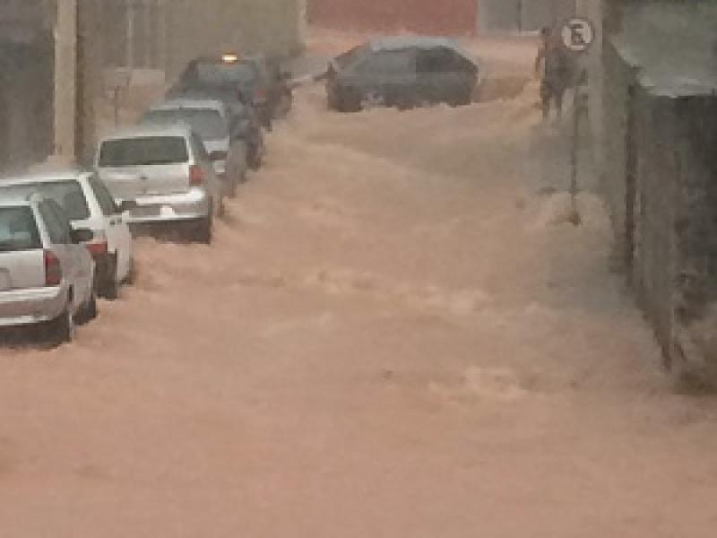 Segundo moradores, água invadiu estabelecimentos e arrastou carros. Defesa Civil e Bombeiros contabilizam prejuízos