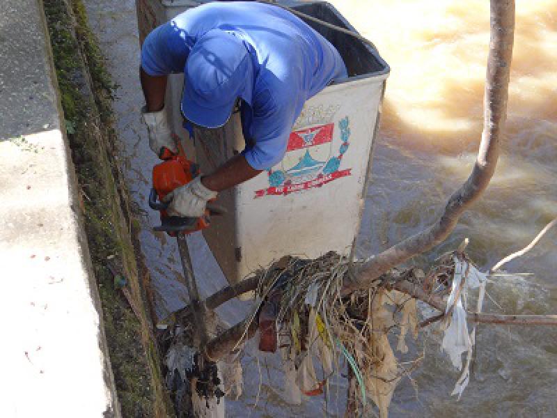 Entre os trabalhos foram retomadas a limpeza viária e a poda de árvores na Av. Fioravante Piovani e também o conserto de uma galeria de águas pluviais.