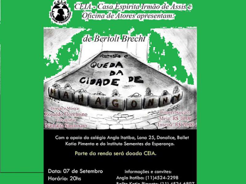 Oficina de Atores e CEIA apresentam: Ascensão e Queda da Cidade de Mahagonny no teatro Talino Zambotto em Itatiba (sp), Confira os detalhes: