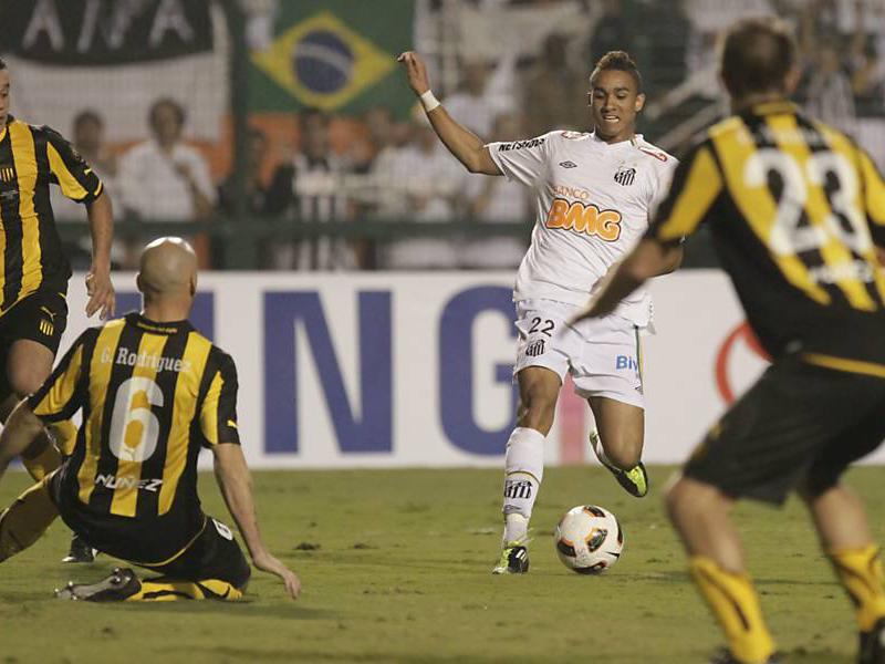 O Santos manteve o jogo sob controle, mas criou pouco e teve dificuldades para finalizar com qualidade. Mérito também da zaga uruguaia, que desarmou Ganso, Elano e Neymar muitas vezes com pressão e atenção.