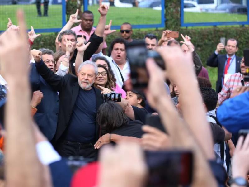 Ele – que estava preso desde 7 de abril de 2018 na Superintendência da Polícia Federal (PF) – saiu do local por volta das 17h40 e fez um discurso no qual agradeceu a militantes que ficaram em vigília por 580 dias, dizendo que eles eram "o alimento da democracia que eu precisava para resistir à canalhice que lado podre do Estado brasileiro, da Justiça, do Ministério Público, da Polícia Federal e da Receita Federal".