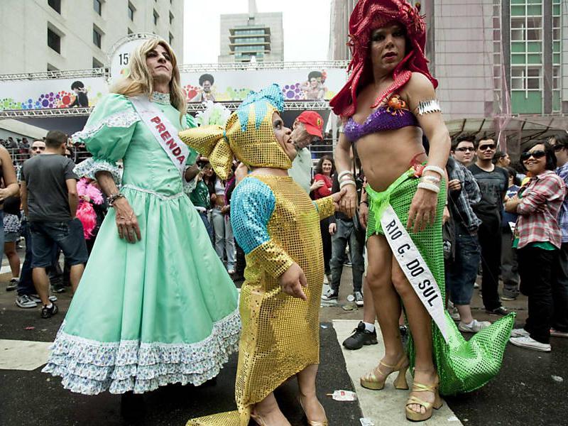 Mas o show é mesmo dos LGBT's. Com roupas e fantasias confeccionadas especialmente para o evento, travestis, gays, lésbicas, bissexuais e transformistas ignoraram a chuva que caía e dançaram ao som de clássicos como "It's Raining Man" e hits da artista-fetiche do mundo gay, Lady Gaga.